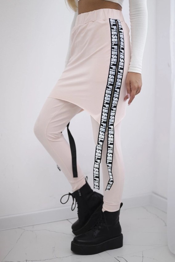 Spodnie/Kombinezon z napisem selfie pudrowy róż
