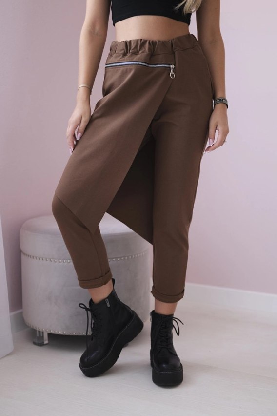 Brązowe spodnie damskie Punto Milano Winter z ozdobnym suwakiem