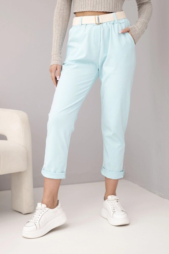Spodnie damskie bawełniane z paskiem i podwijaną nogawką miętowe