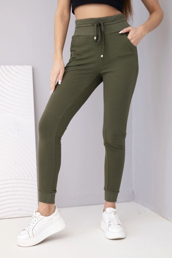 Spodnie damskie dresowe bawełniane z wysokim stanem khaki – komfort w stylu casual