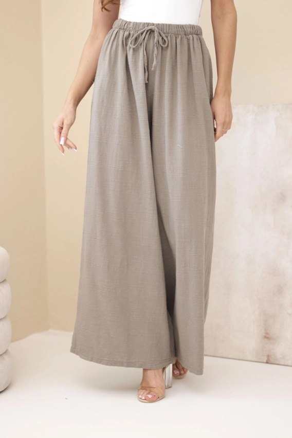 Szerokie spodnie bawełniane z gumką w pasie fango – naturalny komfort w Mika Butik