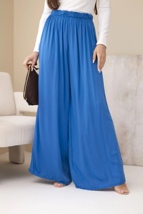 Spodnie damskie wiskozowe szerokie z gumką w pasie chabrowe