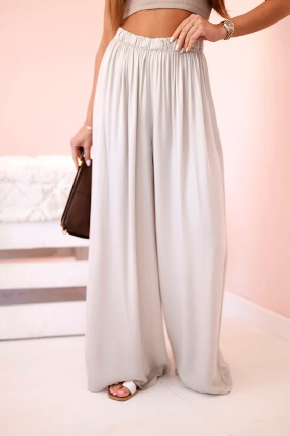 Spodnie damskie wiskozowe szerokie z gumką w pasie ciemno beżowe