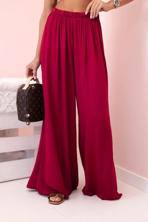 Spodnie damskie wiskozowe szerokie z gumką w pasie ciemno bordowe