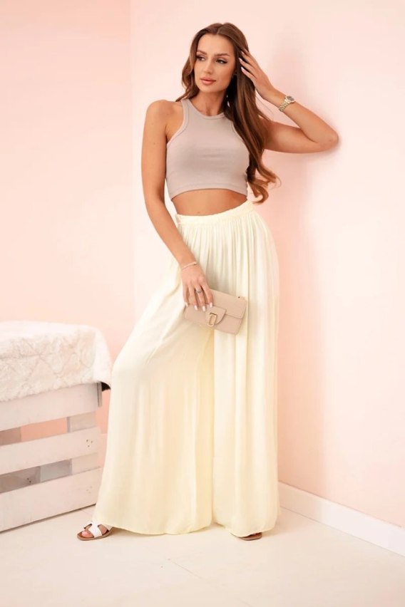 Spodnie damskie wiskozowe szerokie z gumką w pasie żółte