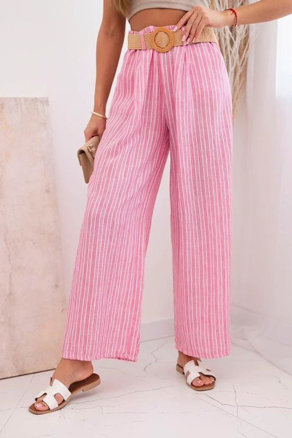 Różowe spodnie damskie wiskozowe w paski z szeroką nogawką