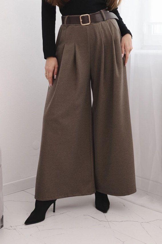 Dodatkowym atutem jest szeroki pasek z klamrą w zestawie, który podkreśla talię i dodaje stylizacji modnego akcentu. Spodnie posiadają eleganckie zakładki z przodu, co nadaje im bardziej dopracowany wygląd - świetnie sprawdzą się zarówno na co dzień, jak i do pracy czy spotkania biznesowe.