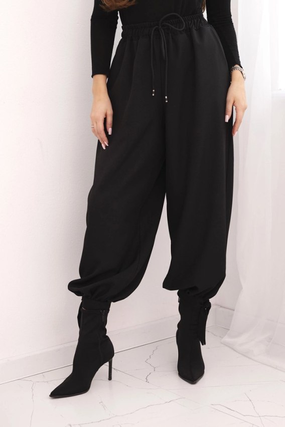 Spodnie damskie z szeroką nogawką i wiązaniem u dołu czarne