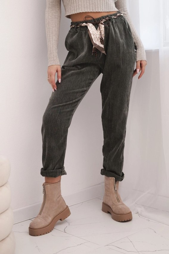 Spodnie damskie z wiskozy z apaszkowym paskiem khaki