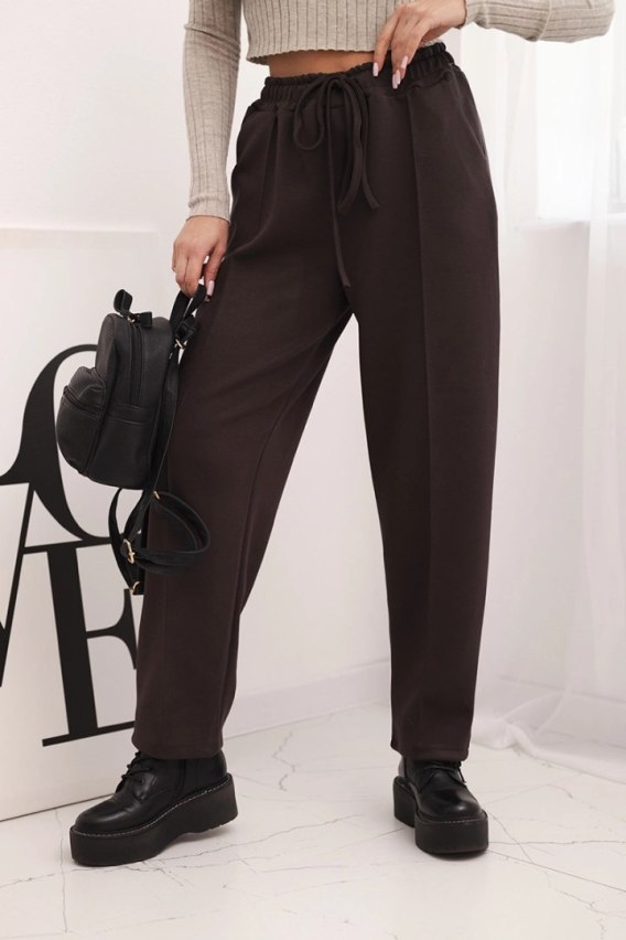 Brązowe spodnie damskie z wysokim stanem i wiązaniem w pasie – elegancja w stylu casual