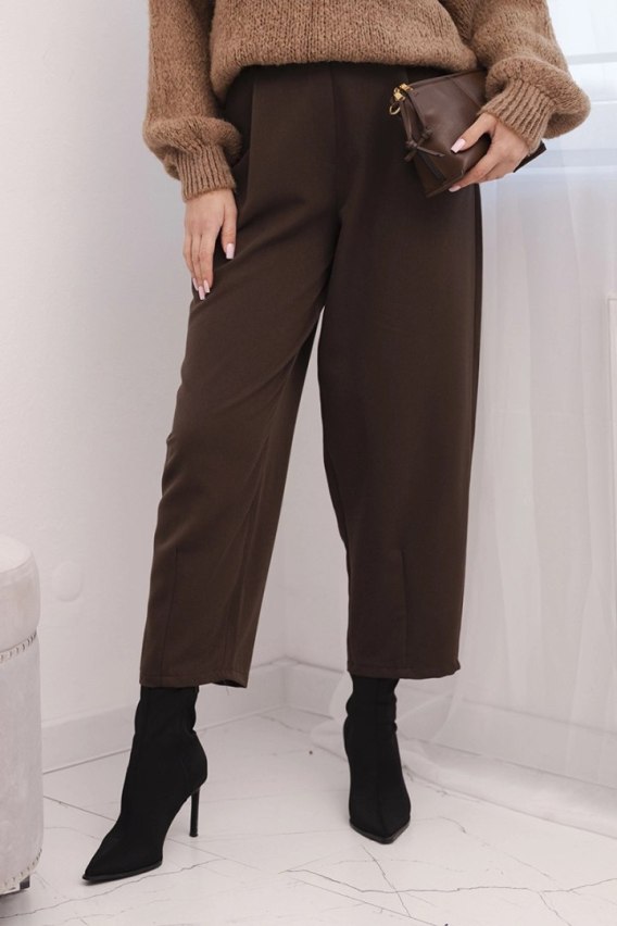 Spodnie damskie z wysokim stanem i zakładkami brązowe