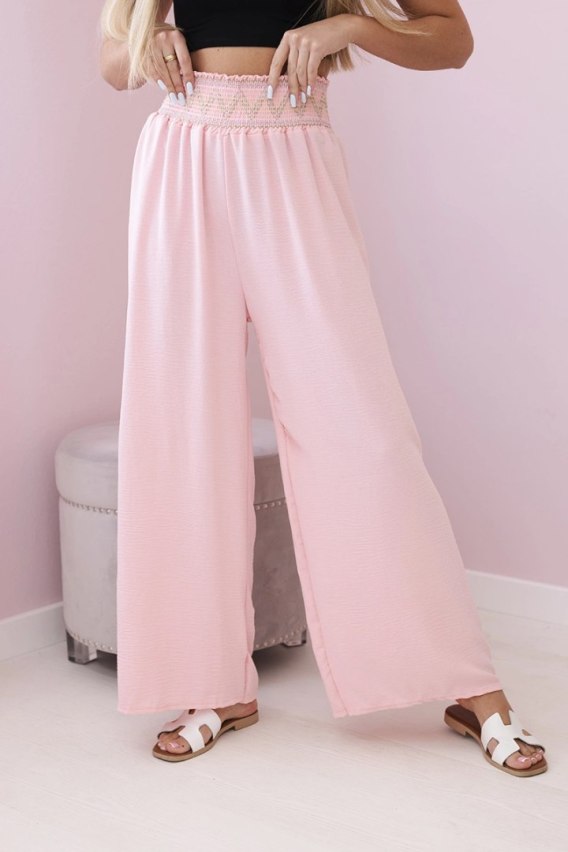 Spodnie z szeroką gumą w pasie to praktyczny i wygodny wybór na co dzień. Dzięki szerokiej gumie w pasie zapewniają one doskonałe dopasowanie do figury i komfort noszenia. Idealne na relaksacyjne spacery, domowe obowiązki czy casualowe spotkania z przyjaciółmi. Doskonale łączą wygodę z modnym stylem, a szeroka guma dodaje im oryginalności i lekkości. Te spodnie staną się szybko ulubionym elementem Twojej garderoby, pozwalając Ci cieszyć się komfortem przez cały dzień. Rozmiar jest uniwersalny i będzie odpowiedni dla Pań noszących rozmiar S, M lub L.