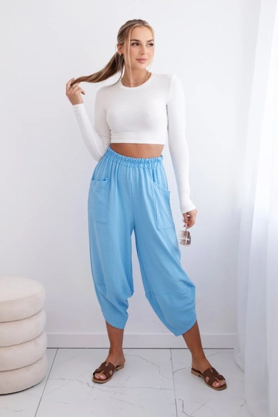 Spodnie z szeroką nogawką i kieszeniami niebieskie