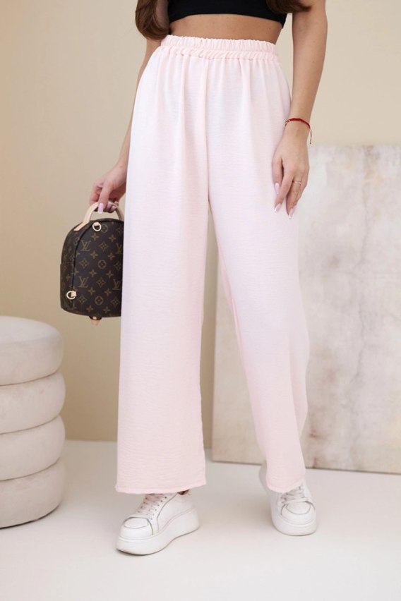 Spodnie z wiskozą z szeroką nogawką to wyjątkowy element garderoby, który łączy w sobie komfort i elegancję. Wykonane z lekkiego i przewiewnego materiału wiskozy, te spodnie gwarantują nie tylko swobodę ruchów, ale także zapewniają uczucie lekkości i świeżości przez cały dzień. Szeroka nogawka nadaje spodniom charakterystyczny, luźny fason, który jest zarówno modny, jak i wygodny. Ten element sprawia, że spodnie prezentują się niezwykle stylowo i efektownie, dodając oryginalności każdej stylizacji. Uniwersalny design spodni z szeroką nogawką sprawia, że doskonale pasują one do różnych okazji i stylizacji. Możesz nosić je zarówno do codziennych, luzackich outfitów, jak i do bardziej eleganckich zestawów na spotkania biznesowe czy wieczorne wyjścia. Spodnie z wiskozy z szeroką nogawką to idealny wybór dla kobiet, które cenią sobie wygodę i styl. Dzięki swojemu uniwersalnemu designowi i wysokiej jakości wykonania, te spodnie stanowią niezastąpiony element garderoby, który świetnie uzupełni każdą kolekcję ubrań. Rozmiar jest uniwersalny i będzie odpowiedni dla Pań noszących rozmiar S, M lub L.