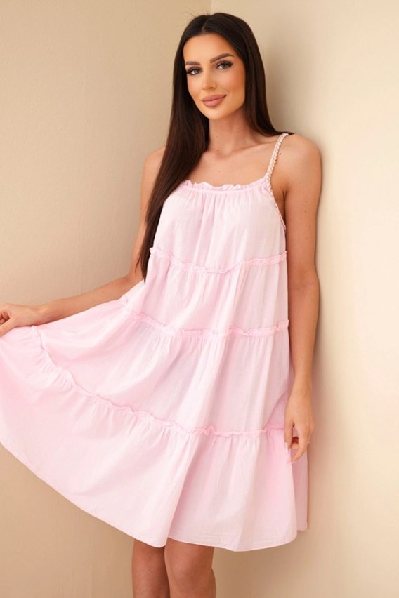 Różowa sukienka damska bawełniana na ramiączkach z falbanami – romantyczny wdzięk w stylu letnim