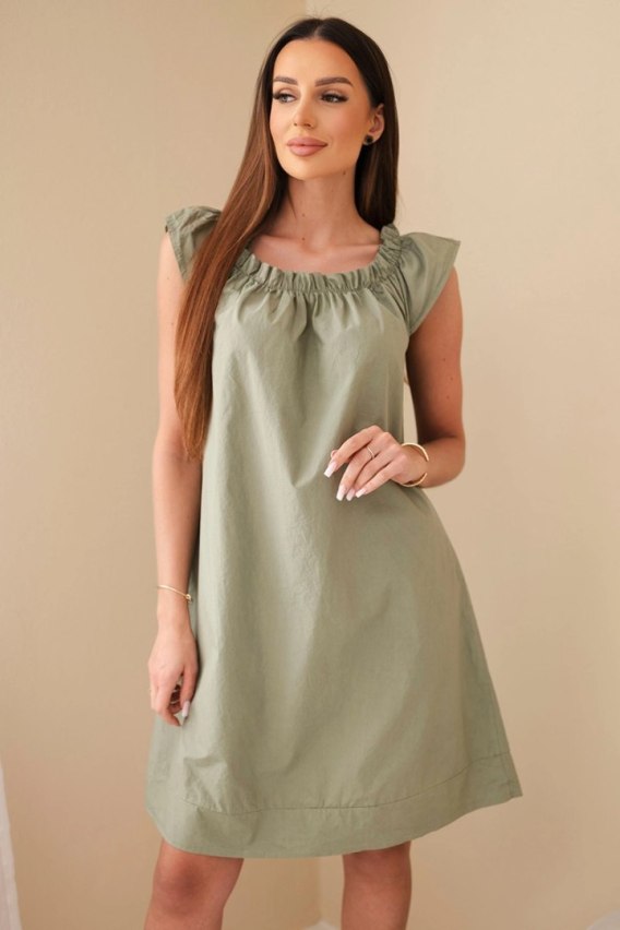 Sukienka damska bawełniana z marszczonym dekoltem i falbanką khaki