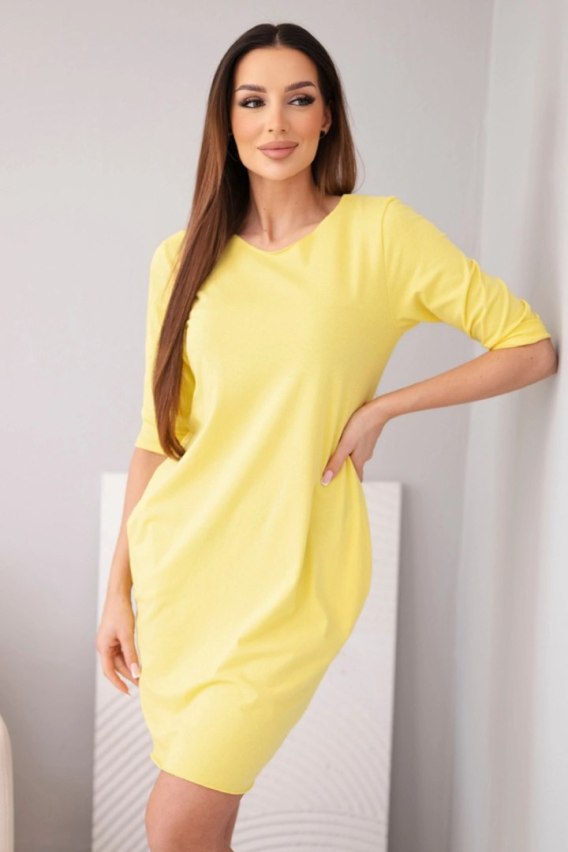 Sukienka damska bawełniana z rękawem 3/4 i kieszeniami żółta