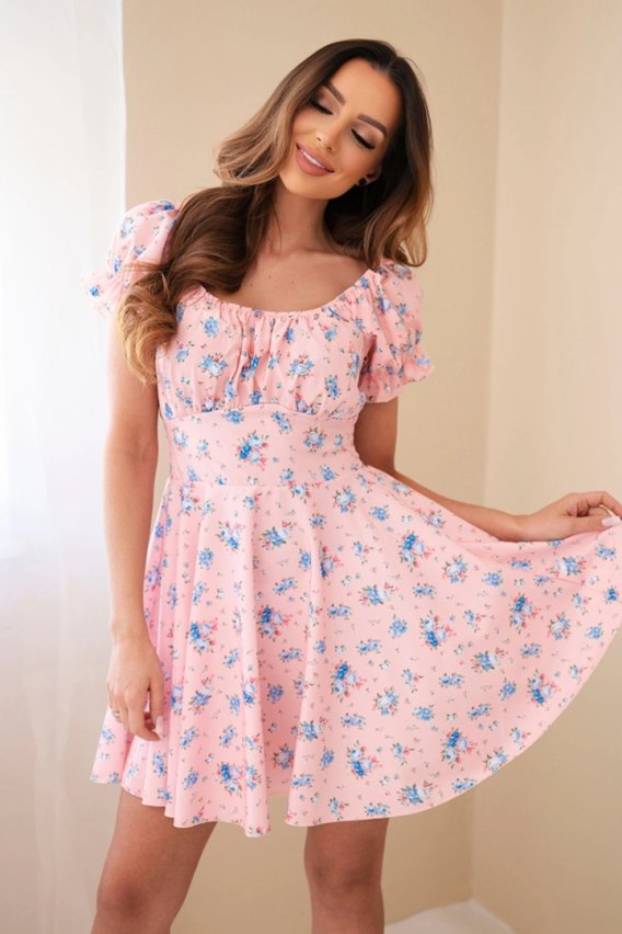 Sukienka damska w kwiaty z bufiastym rękawem i elastyczną talią pudrowy róż – dlaczego to fundament kobiecej garderoby?