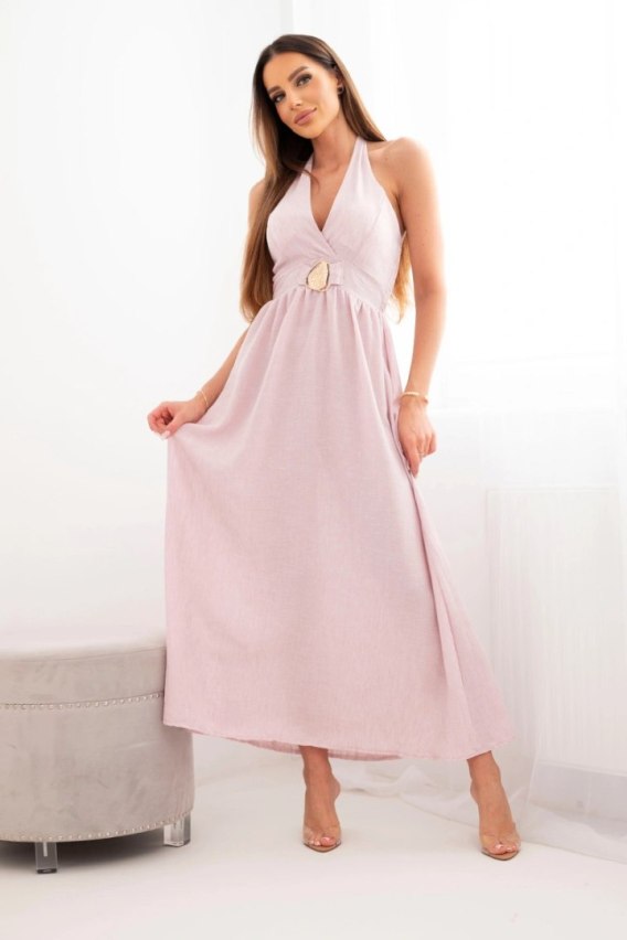 Sukienka damska wiskozowa maxi wiązana na szyi z ozdobną klamrą ciemny pudrowy róż