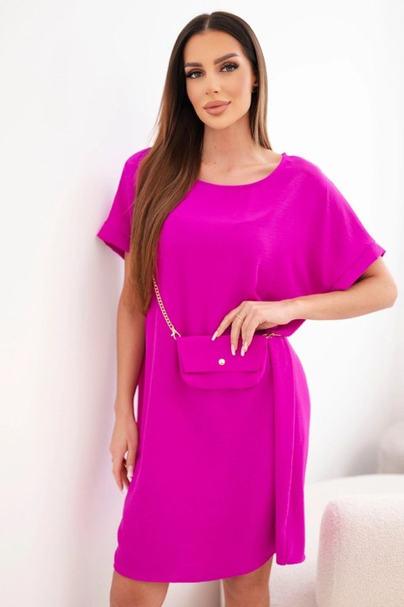 Sukienka damska z krótkim rękawem i torebką na łańcuszku ciemno fioletowa