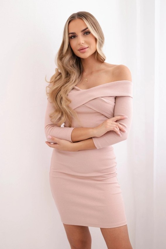 Sukienka dopasowana z dekoltem V ciemno pudrowy róż