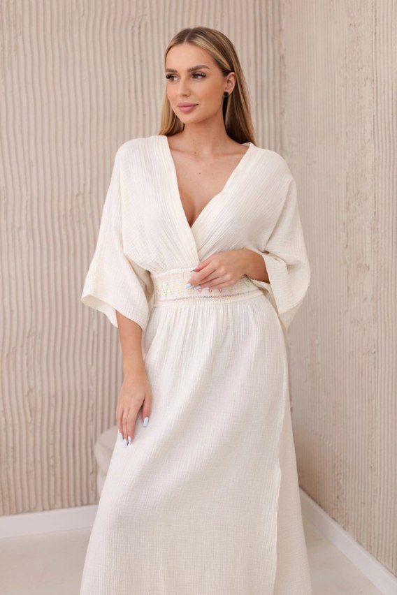 Sukienka muślinowa z haftem w talii to wyjątkowy element garderoby, który łączy w sobie delikatność i wyrafinowany styl. Haftowany detal w talii nadaje sukience subtelności i elegancji, podkreślając jednocześnie talię. Wykonana z lekkiego i przewiewnego materiału muślinowego, sukienka zapewnia komfort noszenia nawet w ciepłe dni. Jej wyjątkowość polega na połączeniu romantycznego haftu z lekkością muślinu, co nadaje całej stylizacji wyjątkowego uroku. Doskonała na letnie spotkania, romantyczne wieczory czy specjalne okazje, ta sukienka pozwoli Ci poczuć się kobieco i wyjątkowo, dodając Twojej stylizacji subtelności i elegancji. Rozmiar jest uniwersalny i będzie odpowiedni dla Pań noszących rozmiar S, M lub L.