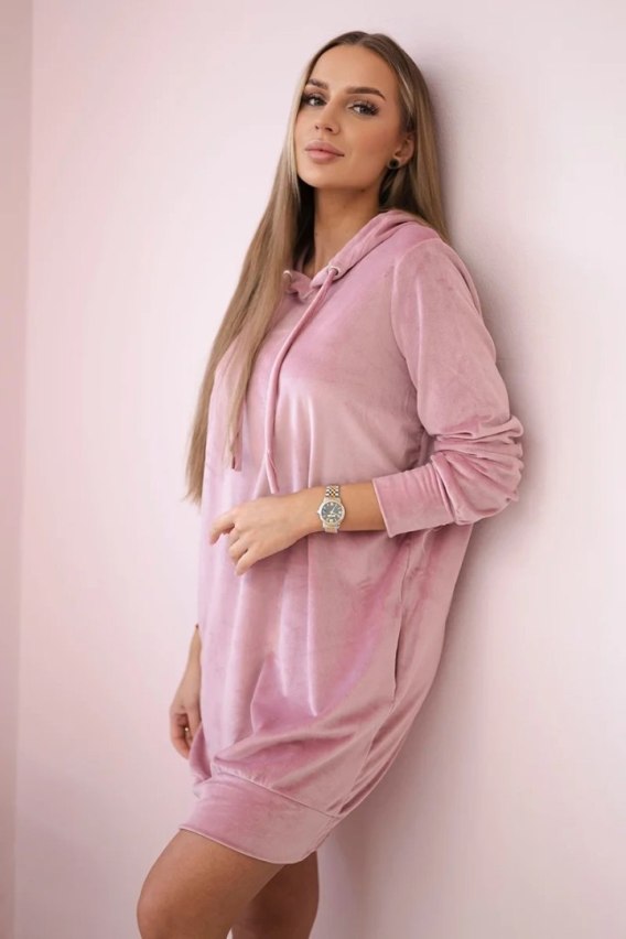Ciemnoróżowa sukienka welurowa z kapturem – luksusowy komfort w sportowym wydaniu