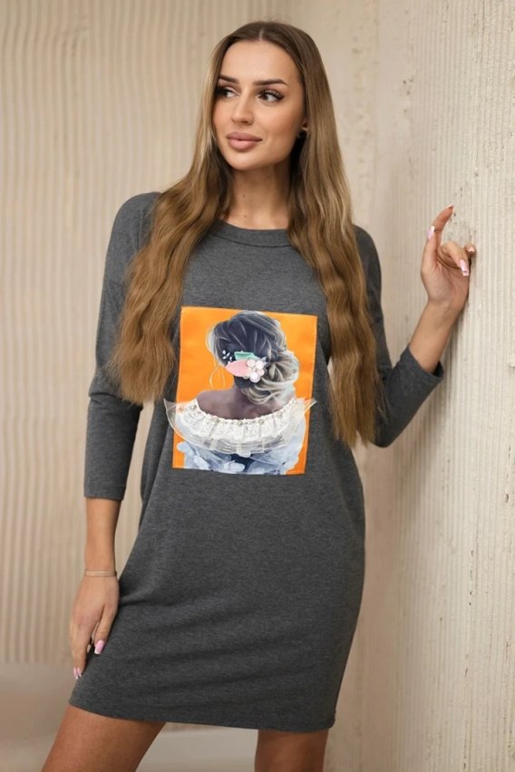 Sukienka z grafiką 3D, koronka grafitowa