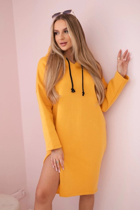 Sukienka z kapturem i rozcięciem na boku brzoskwiniowa