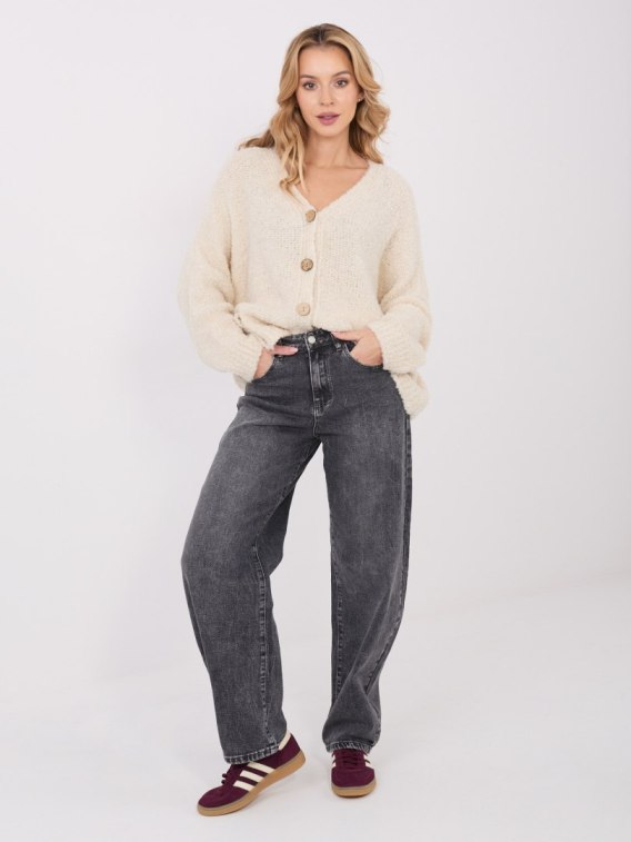 Fason swetra łączy w sobie klasykę z nowoczesnością. Dekolt w serek (V-neck) pięknie wydłuża szyję i dodaje sylwetce lekkości. Główną rolę grają jednak ozdobne guziki, które pełnią funkcję biżuteryjnego akcentu. Dzięki nim sweter zyskuje elegancki charakter i nie wymaga zakładania naszyjnika czy broszki, by robić wrażenie. To detal, który zamienia zwykły sweter w element garderoby wizytowej.