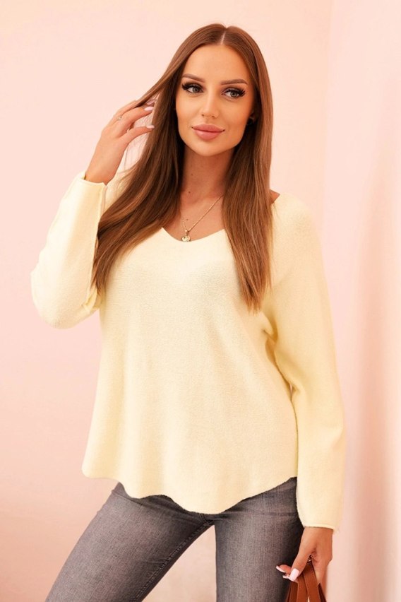 Sweter damska z wiskozą z dekoltem w serek cytrynowy