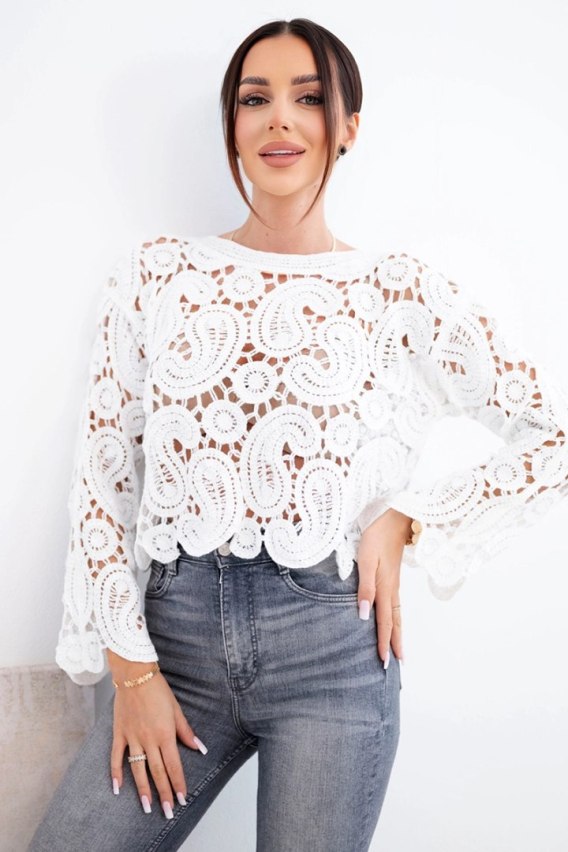 Sweter damski ażurowy z dekoracyjnym wzorem i długim rękawem biały – dlaczego to kwintesencja wiosennej świeżości?