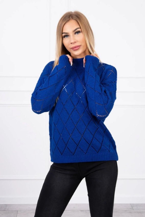 Sweter z półgolfem i wzorem w romby chabrowy
