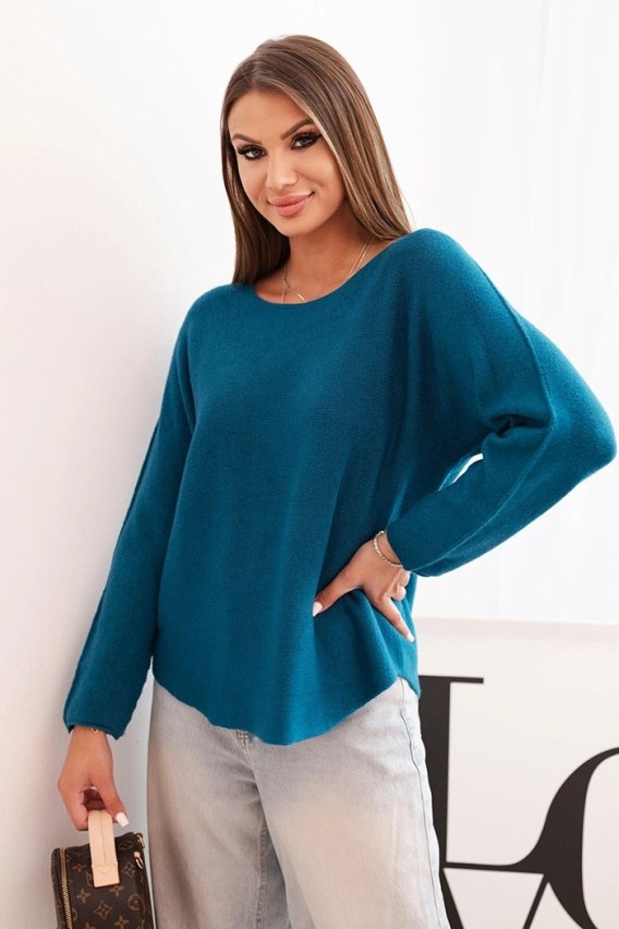 Sweterek damska z wiskozy z długim rękawem i okrągłym dekoltem morski